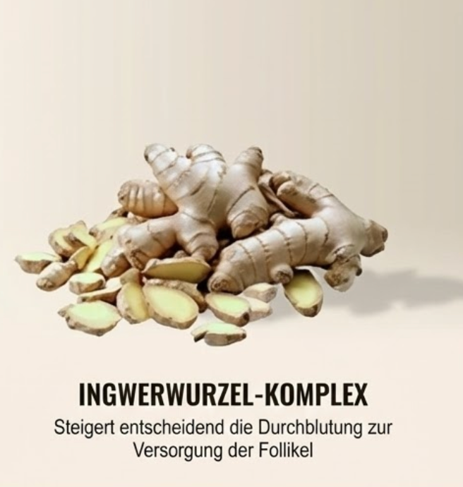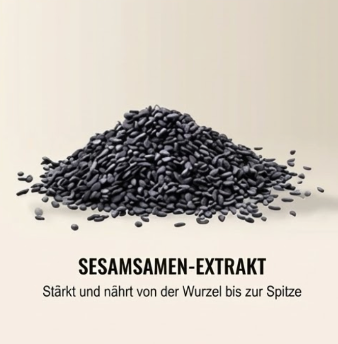 - Versorgt & aktiviert: Sesam-Extrakt liefert wichtige Nährstoffe, Ingwerwurzel fördert die Durchblutung und „weckt“ ruhende Follikel.